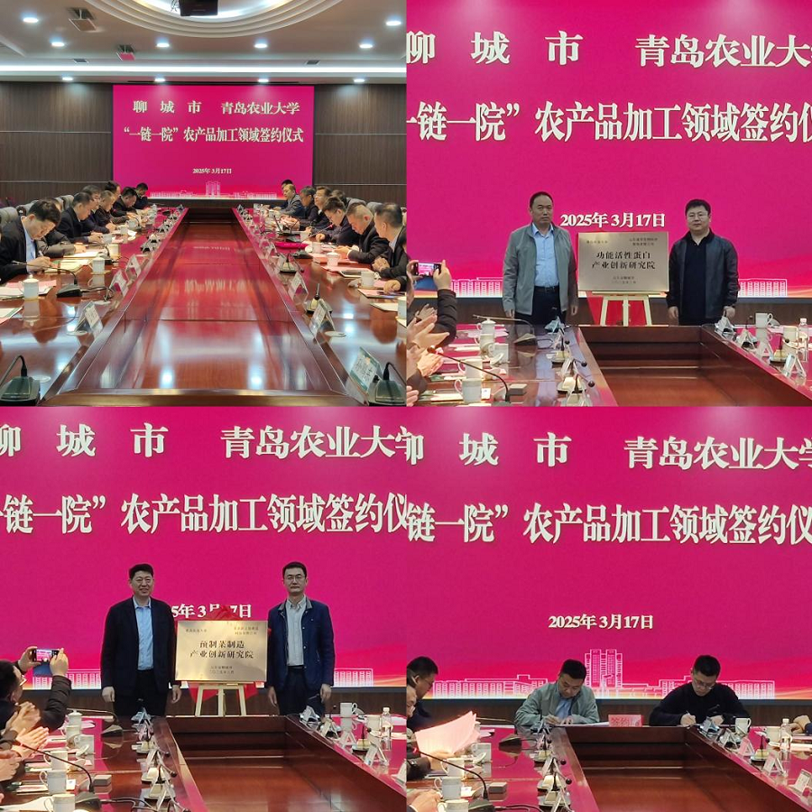 期間,聊城產(chǎn)研院參加聊城市與青島農(nóng)業(yè)大學(xué)“一鏈一院”農(nóng)產(chǎn)品加工領(lǐng)域簽約儀式活動(dòng)。