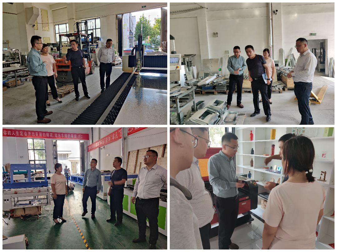 在巨龍激光公司,楊濟坦一行參觀了公司激光雕刻機車間、CNC車間、激光打標車間,孫學其介紹企業(yè)研發(fā)、生產(chǎn)、運營及銷售等情況,雙方就企業(yè)當下的發(fā)展需求、面臨的難題等進行對接交流。
