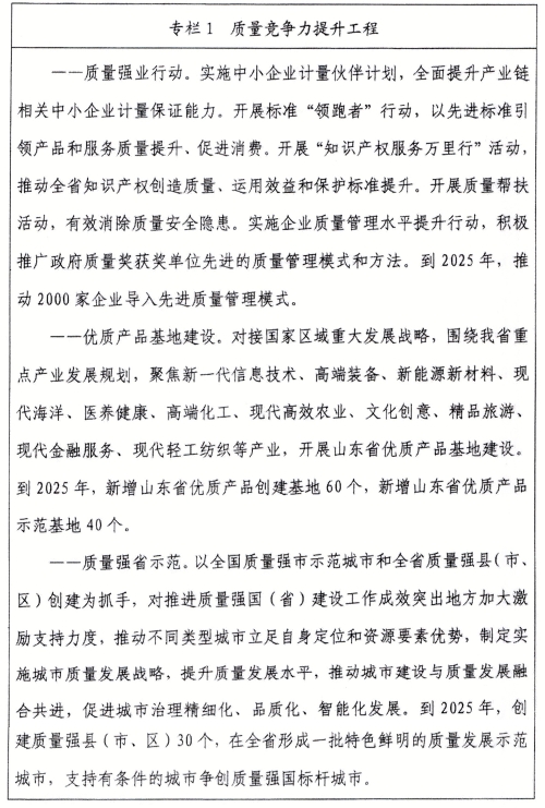 近日,省委、省政府印發(fā)《山東省質(zhì)量強省建設綱要》,要求各級各部門單位認真貫徹落實。